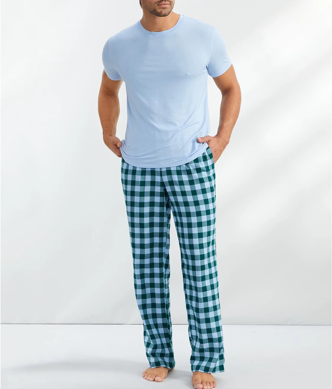 - Feel comfortable in these relaxed fit plaid pajama pants