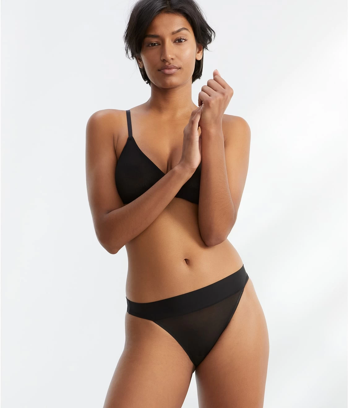 - Comfortable, lightweight mesh mid-rise cheeky tanga
